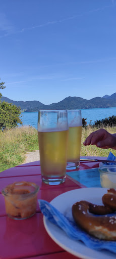 Unfortunately I just want to warn others about our experience. 😑 The place is wonderful but it is spoiled by rude service. There are many places in Germany where people are patient and professional and polite - in the way you would be polite to someone who isn’t from here. But not this place 😶🌫️ It was about 14:00 and the place was packed outside. Sun, 33 degrees, and it’s right between the lake and the bergbahn, so no wonder. But inside was empty. Why not sit there? But we are told that it is not allowed. Ok. Some guy tried to go looking for the bathroom, the woman behind the counter started shouting and running after him. Not a good vibe 🫣 So you stand in line - there is no info - only at the end to find out that you can only order something if you have a table outside. Nothing can be sold to go, not even the pre-portioned cakes lying on the counter. I can understand they don’t have the capacity to make coffees to go, but the cakes? Come on 🤡 The lady was visibly irritated and overwhelmed and I felt sorry for her, but if you’re gonna be rude to your guests, consider hiring help. The lake is amazing and we ended up having a great day, but I read other comments here and identify with the experience! So go somewhere else if it is crowded, don’t bother it’s not worth...