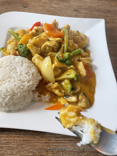 Vorweg - ich bewerte hier das Restaurant und nicht das Essen per Lieferdienst. Das Restaurant für mich war ein wenig schockierend von außen zu sehen. Wenig einladend und stark auf den Lieferdienst ausgelegt. Innen stand schon der Rauch aus der Küche und der Geruch war unangenehm stark. Die Klamotten haben nach dem Besuch stark nach dem Essen gerochen. Ein besserer Abzug wäre für stark frequentierte Zeiten sicher sinnvoll. Die Mitarbeiter waren ausnahmslos freundlich und zuvorkommend. Das hat mir sehr gut gefallen. Das Essen ist ok. Ich gehe wirklich gerne asiatisch essen. Für mich waren beide Soßen aber zu schleimig und schlotzig und die thai Soße hatte nichts mit Kokosmilch zu tun, wie ich es erwartet hatte. Positiv ist zu erwähnen, dass der Schärfegrad je nach Belieben angepasst werden kann, unabhängig davon was die Karte sagt. Der Preis ist aber der Geschmack. Eine weniger scharfe Thai-Soße schmeckt super fad und wenig appetitlich. Dann doch lieber die scharfe Variante und sehr viel Reis dazu. Ebenfalls positiv zu erwähnen ist, dass auf Nachfrage etwas von der scharfen Thai Soße mit Gemüse gebracht wurde - daher konnten wir auch den Vergleich ziehen und nachschärfen. Reis bekommt man ebenfalls mehr, wenn man es wünscht. Das Gemüse war sehr frisch, die Ente knusprig und lecker. Überraschend kamen beide Gerichte mit Gemüse, obwohl nur bei einem Gemüse als Beilage ausgelobt war und wir Nudeln beim anderen erwarteten. Das spezifiziert die Karte nicht ausreichend. Insgesamt als Restaurant eine mittelmäßige Erfahrung. Mit echten Thailändischen Essen, wie ich es aus Thailand kenne, oder sonst einer asiatischen Küche, hat es wenig zu tun. Aber es entspricht weitergehend dem Standard asiatischer Küche als Schnellimbiss. Ins Restaurant würde ich nicht nochmal gehen, bestellen wäre in Ordnung. Preis-Leistung ist in Ordnung.