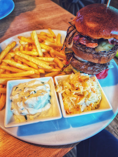 Die Hauptspeise war nicht besser da alles nach Tiefkühlprodukten ausgesehen und geschmeckt hat. Der Burger Bun war total trocken und gut hart. Viel zu viel Soße auf dem Burger und kaum Soßen zur Auswahl für die TK Pommes. Ich habe noch nie fast das komplette Essen jemals zurückgeschickt aber dieses Lokal hat mich dazu gebracht, dass ich dieses Essen kaum anrühren konnte.