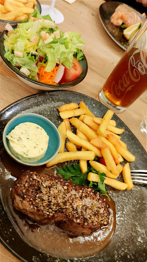 Read moreVielleicht haben wir einfach zuviel erwartet...zumindest in dieser Preisklasse. Aber vorweg: das Ambiente ist der Mega Hammer! Sehr sehr schön! Wirklich! Für die äusserst geschmackvolle Einrichtung mit viel Liebe zum Detail, vergebe ich gerne 5 Sterne. Aber, das war es leider auch schon. Die Vorspeise kam verwunderlicher Weise vor den Getränken, ging mehr als flott. Bei einer Spargelcremesuppe erwarte ich auch wirklich eine Cremesuppe und keine versalzene Wasserbrühe mit einem harten Stück Spargel. Somit ging die Suppe zurück. Ein netter Zug war, dass ich eine neue Suppe bekam, die dann zwar eingedickt war, aber geschmacklich riss das Mehl es dann auch nicht raus. Allerdings liess mir der Koch ausrichten: "...eine Spargelcremesuppe sei halt dünn..." Aha?!? Ich schaue jetzt mal verblüfft. Guuut, kenne ich echt anders und tatsächlich besser. Dachte immer im Wort Creme stecke schon etwas "dickeres"...aber naja. Das Highlight der Vorspeisen war der Brotkorb mit 3 verschiedenen Dipps. Echt leckeres Brot. 2x bestellt, einmal geliefert bekommen. Auf Nachfrage, wir hätten das doch 2x bestellt, kam zwar Brot nach, aber keine Dippsosse. Ich denke wir haben dann noch gut 80 Minuten auf die Hauptspeise gewartet. Wo das eine zu schnell und vor den Getränken auf den Tisch kam, brauchte das andere einfach zu lang...oder es stand schon da und wartete und wartete...denn: Pommes kalt, Steaks lauwarm, beim Schaffnertopf waren von 3 Fleischstücken nur eins geniessbar, der Rest kalt und zäh, das Gemüse , auch nur lauwarm und wirklich sehr bissfest. Andere würden Rohkost dazu sagen, ich sage angekocht. Bei Möhren okay, aber Bei Blumenkohl nicht so lecker. Das Steak lag in einer braunen Bratensosse...hm...für uns nicht wirklich lecker. Es passte nicht. Wäre es ein Pfeffersösschen gewesen okay, aber es war eine Art Rinderbratensosse. Mein Steak war geschmacklich gut und zart. Aber als Medium hart an der Grenze um nicht als well done durch zu gehen. Aber ich persönlich mochte diesen zartrosa Ton, sogar lieber als dass zuviel "Bratensaft" auf den Teller läuft. Der eine mag es, der andere halt nicht. Aber wie gesagt, geschmacklich war das Steak mit Kräuterbutter gut, aber leider nur lauwarm. Meine Mutter meinte, die Kräuterbutter schmecke ranzig. Das konnte ich zwar nicht sagen, jeder hat so seine eigene Creation, aber heute hatten dann doch 2 von 3 Personen leider etwas andere Problemchen... Hervorheben konnte letztendlich mein Mann die leckeren Kroketten, und meine Mutter und ich den Beilagensalat mit wirklich gutem Dressing. Als Nachtisch wollten wir nichts mehr essen, aber ich bestellte 2 Virgin Coladas. Die Zeit verging und verging, nun ja, es ist recht viel los, okay die Ananas muss ja auch noch ausgepresst werden, aber bei dem Gedanken, dass die Kokosnuss noch wachsen muss, kamen mir dann doch schon ein paar Zweifel... Irgendwann hat der Servicemann, der nicht wirklich alles verstand, gemerkt, dass er die Bestellung nicht ausgelöst hatte...aber dann ging es auf einmal flott! Ich kann nur sagen: sehr leckere Cocktailmischung, süffig und ich hätte gerne noch mehr getrunken, aber irgendwann will man auch mal wieder nach Hause. Nun die Frage " würde ich es nochmal tun...?" Ja, bei schönem Wetter im Biergarten, mit Cocktail, Brotkorb und Dipps...und dem Steak gebe ich auch nochmal...