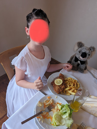 Read moreWir haben die Kommunion meiner Tochter dort gefeiert, emotional betrachtet, hat es mich total abgeholt, weil ich meine vor 28 Jahren auch dort hatte und sogar die gleichen Tische. Ich fand es zwar schade, dass wir nicht alle an eine Tafel gepasst haben, aber es war am Ende trotzdem okay. Der Salat schmeckt, seit ich mich erinnern kann immer gleich und ist für meine Mama und mich vorab schon das Highlight gewesen. Das Essen ist und bleibt der absolute Wahnsinn. Ich hatte die Pfanne auf dem Bild und es wird auch immer dort mein Gericht sein. Ich liebe es einfach. Die Spätzle sind hausgemacht. Wir waren 26 Personen und alle sind zufrieden gewesen mit dem Essen. In zwei Jahren hat meine Mini ihre Kommunion und ich weiß schon wo wir essen werden. 🫣😁...Ach ja, und die Preise sind absolut top gewesen, ich hatte mit wesentlich mehr gerechnet bei Getränken, Hauptspeise, Nachspeisen, Kaffee und...