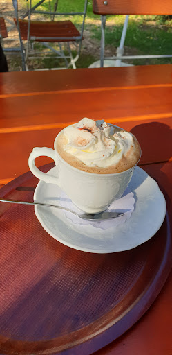 Read moreJa, sind wir denn hier schon in Niederbayern...:-)? Einen Cappuchino bestellt und was dann kam, war ein der schlechteste Cappu, der mir jemals serviert wurde (außer in der DDR): Die Basis war offensichtlich in heißem Wasser verrührtes süßes Pulver (Krüger war wohl es nicht), Kaffeegeschmack war nicht festzustellen. Das ganze noch mit einem Sahnehäubchen verfeinert... Bäääh! Gegessen haben wir dort (Gottseidank?) nicht, so kann ich über das Essen sonst weiter viel sagen. Die Salate sahen ganz manierlich aus, die Convenience-Kroketten waren ziemlich blass. Den Stern gibt's für den durchaus netten Garten - so lange man nicht direkt an der Straße sitzt oder in unmittelbarer Nähe...