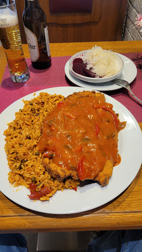 I am an American. For those who are tourists in the area, I would highly recommend this restraunt. Great food, great service, great people. You get a blend of two worlds; German and Balkan foods. Get the schnitzel and fries with their curry ketchup.
