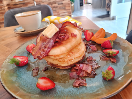 Wir sind spontan auf die Idee gekommen auswärts zu frühstücken, weil wir einen Termin in Krefeld hatten. Meine Frau hat durch eine schnelle Googlesuche dieses Café gefunden. Uns beiden war es vollkommen unbekannt. Aus der Sicht eines Gastes (ich selbst bin Ex-Gastronom) habe ich mich wirklich rundrum wohl gefühlt. Das Servicepersonal war genau richtig oft am Tisch, hat nicht zu lange auf sich warten lassen, war auch nicht alle 2 Minuten am Tisch um eine Frage zu stellen. Sie wirkte weder gestresst, noch gelangweilt, hatte aber immer gut zu tun. Wir hatten eine angenehme Zeit uns für die Getränke zu entscheiden und als diese dann kamen, konnten wir sofort in eine Essensbestellung übergehen. Wir entschieden uns für die Pancakes "American Dream" mit Speck und für das Baguette "Geschwisterherzen" mit Roastbeef. Zum Roastbeef-Baguette: Lecker. Punkt. Das Brot war knusprig, das Roastbeef auf den punkt gebraten, karamelisierte Zwiebeln sehr lecker, nicht zu viel Schnickschnack auf dem Baguette, aber auch nicht zu wenig und einen kleinen Salat am Tellerrand. 9 von 10 - ich selbst kann das nicht besser. Zu den Pancakes: Typische nordamerikanische Pancakes, also diese Frühstückspfannkuchen, wie sie in den USA und Kanada wirklich jeder kennt. Das Topping war Ahornsirup, Bacon und Butter. Klingt jetzt erstmal nicht soooooo sehr ausgefallen, jedoch hat die richtige Mischung und Dosierung das echt rausgehauen. Vier kleine Pancakes übereinander, kleine Bacon-Flakes und Früchte drumherum, oben drauf auch noch Bacon-Flakes und nen einzelnen Stripe, eine Butterflocke oben drüber, die so langsam vor sich hinschmilzt, das ganze mit Ahornsirup nappiert. Einfach geil. Ich selbst habe noch nie authentische nordamerikanische Pancakes probiert, kann mir aber nicht vorstellen, dass es dort besser schmecken würde. 10 von 10. Echt. Die Getränke waren heiß und lecker. Es wurde natürlich drauf geachtet, dass für mich laktosefreie Milch verwendet wurde. Ich bin leider kein Kaffeesommelier oder Barrista, deswegen kann ich nicht viel zu Bohne oder Röstung sagen. Eigenes Knowledgegap. Aber ich fands halt lecker. 7 von 10 für meinen Cappuccino - den Latte Macchiato meiner Frau habe ich nicht gekostet. Als Dessert hatten wir einen Brownie. Der war entweder hausgemacht oder ein extrem authentisches Convenienceprodukt. Ich habe versäumt nachzufragen, aber wenn man mir die Pistole auf die Brust hält, würde ich wetten, die Kuchen waren alle hausgemacht. Nicht zu fest, dass es ein Schokoriegel sein könnte, nicht zu sapschig, dass es als Schokopudding durchgehen würde. Lecker war er obendrein. Alles in allem, ein sehr leckerer Brownie - voll verdiente 7,5 von 10 Punkten. Zum Ambiente möchte ich nicht viel sagen. Es war einladend, wirkte bei weitem nicht überladen oder erschlagend. Aber das ist echt kein Punkt, wodrauf ich achte. Augenmerk für mich (aber ich achte als Ex-Gastronom auf andere Dinge als die restliche Bevölkerung) war die wirklich sehr akkurate Getränkekarte mit Kreidestift an den Wand. Da hätte ich nen Monat dran gegessen. Buchstaben die sich so dermaßen gleichen, als wären sie gedruckt. Das hat mir gut gefallen. Wie bereits erwähnt achte ich nicht so sehr auf Deko, deswegen überlass ich diese Bewertung den Profis darin =) Preis-Leistung hat voll und ganz gestimmt. Pre-Inflation hätte ich das Café im oberen Mittelfeld angesiedelt, aber heutzutage ist das schon fast an der oberen Kante vom unteren Mittelfeld. Es gibt genug Klitschen und auch große Betriebe, da zahle ich für die gleichen Kaffeespezialitäten 40-50 Cent mehr und habe den gleichen oder schlechteren Geschmack. Auch was das Essen betrifft, war das jetzt nichts, wo ich sagen würde, dass ich das nicht nochmal ausgeben würde. Aus der Sicht eines Gastronoms hat fast alles gepasst. Ich hätte eine klitzekleine Hand voll Kritikpunkte, aber die würde ich hier nicht öffentlich äußern, weil das nur Gastronomen interessiert =). Alles in allem sehr geiler Laden! Ich kann jedem empfehlen sich selbst ein...