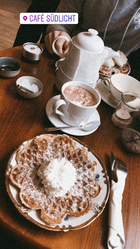 Read moreWir waren letztes Wochenende eher durch Zufall im Südlicht und haben einige sehr schöne Stunden dort verbracht. Besonders zu empfehlen ist der sehr leckere heiße Kakao mit Wasser ;)