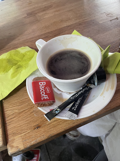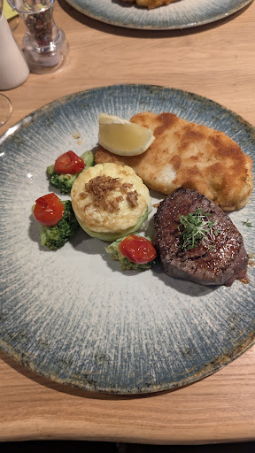 Ein Valentinsdinner....welch ein schöner Anlaß einmal diese neu interprätierte Gastronomie auszuprobieren. Mit Voranmeldung und Dinnerauswahl im Vorfeld freuten wir uns sehr auf einen besonderen Abend. Eine ein wenig unherzliche Begrüssung - nachdem man erst mal hilflos vor einer scheinbar gestressten Crew stand - läutete den Abend ein. Nach einer kleinen Suche auf einer Gästeliste, fand man uns dann doch. Ein Herr wies uns durch Fingerzeig einen Tisch zu, drehte sich rum und war wieder entschwunden. Nun standen wir, zum ersten mal in dieser Gastronomie, vorerst planlos im Saal und wussten nicht wohin mit den Jacken. Gut, man kann sich ja selber orientieren....aber ein freundliches Wort oder Hinweis wäre ein Pluspunkt gewesen, insbesondere an einem so romantischen Mottoabend. Leider wurde der Abend durch viel zu lange Wartezeiten und andere Vauxpas ein Abend, der sich furchtbar in die Länge zog und irgendwann nur noch in Fluchtgedanken mündete... Die zu Anfang bestellten Getränke, ein Bier, ein Cremant (lecker) und eine große Flasche Wasser sollten die einzigen Getränke bleiben. Schade, denn wir hätten sicher mehr konsumiert. Leider hat man auch nicht allzu oft jemand angetroffen, den man hätte fragen können. Gruß aus der Küche war auch gut, jedoch blieb das Geschirr einfach den ganzen Abend stehen. Wartezeit bis zur Vorsuppe dann ca. 1 Stunde. Irgendwas lief nicht rund. An zwei weiteren Nebentischen war der gleiche Unmut zu spüren, der uns selber heimsuchte. Die Suppe war schmackhaft. Die Hauptspeise, die ebenfalls wieder sehr lange auf sich warten liess, war auch gut (Portion wäre als Seniorenteller geeignet gewesen, wir empfanden die Portionen jedoch als zu klein). Bis zum Nachtisch: ein geeister Cappuchino/Cappuchino-Eis, war es wieder eine lange Durststrecke. Unser Eindruck, es war auch der Kellnerin sehr unangenehm....Das Dessert war im Übrigen überproportional groß und hätte wesentlich serviert werden können, vermutlich wurde das Eis ja nicht erst on Point hergestellt. Wenn man also nachsichtig ist, mit einem eventuellen Personalmangel? man weiss es ja nicht....., so muss man doch anmerken, das bei zwei Valentins-Menues zur Auswahl, verschiedene Komponenten wie Vor- und Nachspeise weitgehend gleich sind und mit Sicherheit ja auch vorbereitet waren (sonst hätte man ja nicht bei Anmeldung sein Menüwunsch preisgeben müssen) so muss man leider die Kritik aussprechen, das man die Wartezeiten nicht nachvollziehen kann. Die musikalische Live-Untermalung war zu laut (der Musiker war dennoch gut), man konnte sich schlecht mit dem Gegenüber unterhalten. Das Ambiente wirkte modern, aber es war leider nicht so gemütlich wie gedacht. Man musste sich für ein Zwiegespräch gegenseitig aufeinander zubeugen. Manche Tische standen teils zu eng beieinander. Andere Paare hatten wiederum große Tische für sich allein. Eine letztendlich freundliche Verabschiedung konnte den ersten Gesamteindruck leider nicht mehr in ein rosarotes Licht rücken. Als Gast möchte man weder Stress noch Personalmangel spüren, man möchte sich umsorgt und gewertschätzt fühlen. Vermutlich werden wir zum nächsten Valentinstag einfach wieder ein Menü "á la maison" zu uns nehmen. Dennoch würden wir evtl. im Sommer dem Ganzen bei Kaffee und Kuchen eine zweite Chance einräumen. Vielleicht nimmt man sich die Kritik zu Herzen und...
