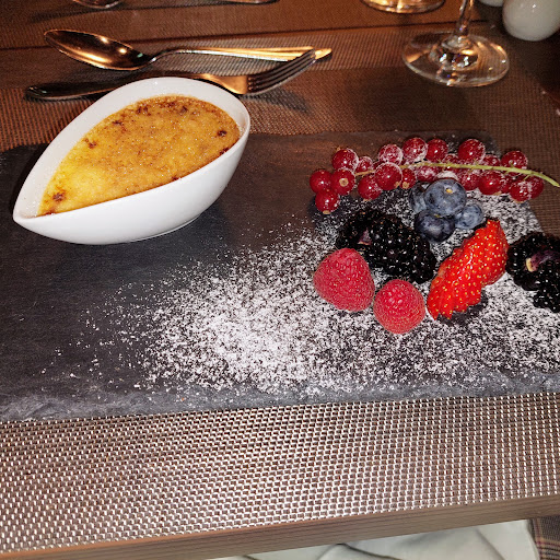 Wir hatten eine arangement so inklusive Nächte im Mercure. Karottencremesuppe im Voraus, Salatteller, Schnitsel streifen in Bauchspek und Rote Grüze nach. Alles ging sehr schnell! Was Brötchen mit Butter und Sahne, dann der Suppe. Verkostet aber schmeckt es nach Karotten? Sehr bald danach dem Hauptgang, drei Scheiben gebackener Kartoffel, drei runde geschnittene Scheiben Snitsel in Speck um herum gerollt. Das war alles. Eine Flasche Mineralwasser (€ 8,50 !!!!). Diese Flasche wurde die Werbung für Wein !! Gut. Auf unsere Frage, wo bleibt der Salatteller? Oops, ich vergaß! Wir konnten noch zum Nachtisch bekommen. Nein, danke. Aber direkte Cash-Kasse! Konnte nicht auf Zimmernummer. In 40 Minuten waren wir...