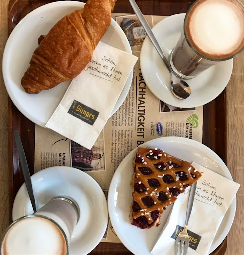 Read moreGroße Auswahl an Frühstück, da gibt es nichts zu beanstanden, auch das Niveau wird gehalten, wir gehen öfters dahin und es schmeckt immer sehr gut. Das Personal gibt ihr letztes und ist wirklich bemüht das der Gast sich wohl fühlt. Der Preise sind nicht grade günstig aber entspricht der Qualität. Andere Anbieter, z.B. ein bestimmter der eine Art von Selbstbedienung anbietet, ist auch nicht sehr günstiger, aber von der Qualität und dem Geschmack, ein paar Klassen tiefer. Wir gehen oft in verschiedene Stinges-Bäckereien, die Qualität ist in allen Bäckereien dieser Kette, erfreulicherweise immer auf dem...