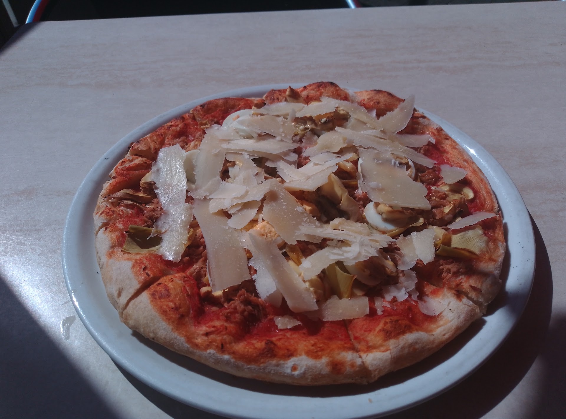 Read moreSeit vielen Jahren fahre ich z B. sonntags zu der relativ kleinen Pizzeria und hole mir eine kleine Pizza Spinaci ! Der Vater der Familie kannte mich und wusste, was ich möchte - ich bezahlte dann und wartete in meinem Wagen, bis er mir vom Fenster aus zuwinkte - Zeichen dass ich meine Pizza abholen kann !! Zum Glück hat die Pizzeria die Pandemie überstanden; offensichtlich ist die Stammkundschaft ihm erhalten geblieben !! Durch Lieferservice ist es wohl gelungen. Als ich letzte Woche das 1. Mal wieder dort war, verhielt ich mich wie immer : Bestellen, bezahlen, ins Auto setzen !! Offenbar ist der ältere Herr nicht mehr da ; so erklärte ich einer jungen Mitarbeiterin, dass ich nach 10 min komme... ( Parkplätze sind schwer zu bekommen ! ) Und dann war ich richtig erfreut: Sie stand plötzlich an meinem Wagen und brachte mir die Pizza ans Auto !! Total freundlich und ich dachte : JA, DAS ist typisch für die stets fröhlichen Italiener *innen !! Sie sind immer bemüht, die gute Stimmung zu übertragen - ich fuhr nach Hause und genoss wie immer meine kleine Spinat - Pizza, bereits in Stücke geschnitten, heiß und lecker wie IMMER !! Mille...