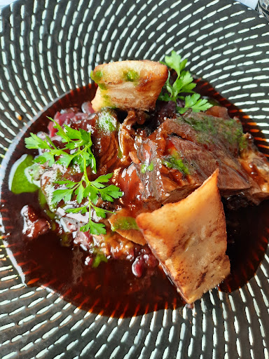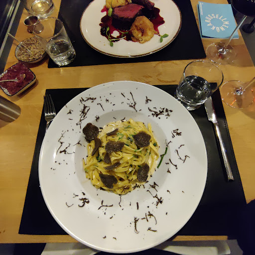Read moreEs wird der Eindruck eines gehobenen Restaurants erweckt, die Erwartungen wurden aber bei uns nicht erfüllt. Wenn man mir beim Eintreten die Jacke abnimmt, erwarte ich auch, das man sie mir zurück gibt. Wenn dann die Garderobenecke auch ein wenig nach Abstellkammer aussieht, sollte man den Gast erst recht nicht dort hin gehen lassen. Das Ambiente ist schick, aber die Stoffserviette alleine reicht nicht. Der Rest vom Tisch sollte auch dazu passen. Die Schüsseln mit Salz und Pfeffer sind eine nette Idee, doch weiß ich nicht wie lange es schon dort steht und wer, was damit gemacht hat. Vielleicht wäre es besser die Schüsseln ( kleinere Mengen ) erst zusammen mit den Speisen auf den Tisch zu bringen und auch wieder abzuräumen. Das Essen war nicht schlecht, hatte aber auch seine Schwächen. Die Vorspeise, mini Tintenfisch, war gut, aber man braucht es nicht 2 mal. Bei der Hauptspeise, Duroc Rücken, fehlte mir die Soße. Ja ich hätte etwas sagen können, aber der Ersteller des Gerichts wird sich schon etwas dabei gedacht haben, oder ? Serviette Knödel , auch wenn sie knusprig angebraten und lecker waren, brauchen Soße. Der Rücken war leider tot. Für mich viel zu durch. Zu den Preisen. Eigentlich zu hoch für das Gebotene. Aber Karte und Rechnung hatten auch unterschiedliche Beträge, die Gerichte waren auf der Rechnung günstiger wie auf der Karte. Auch der Gruß aus der Küche, ein sehr mildes Tomatensüppchen zum Trinken, mit frischen Brot, kann uns leider nicht dazu bewegen noch einmal die...