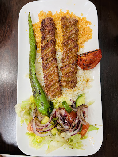 Adana-Kabab: Fast rundum gelungen, die potion ist groß genug und es schmeckt mir. Das Hackfleisch ist gut gewürzt und mit den Beilagen (Brot + Reis + Salat) kommt es auf 4 Sterne. Es fehlt die Grilltomate oder die gegrillte Paprika. .