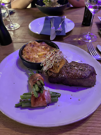 Read moreEs tut mir wirklich leid aber unser Essen war derartig mies das auch der super nette Service und die tolle Einrichtung nicht die Rezension retten konnte. Wir hatten leider teilweise rohe Gambas (ja ich weiß das sie glasig sein müssen, nicht durch aber unsere waren wirklich teilweise roh). Das geäscherte Kalb war wirklich auch nur das. Hauptsache fancy aber probiert hat es der Koch wohl nicht. Es schmeckte nach Asche und Kalb. Die Jus war trotz tiefbraun-schwarzer Farbe völlig unaromatisch weshalb ich hier nur auf einen anrührbaren Fertigartikel schließen kann. Der Gewinner des schlechtes Hauptgangs war jedoch der Seeteufel. Dieser war derartig durchgebraten das das ohnehin schon sehr feste Fischfleisch an einen ungesalzenen Radiergummi erinnerte. Als Nachtisch rundete noch eine Tarte mit einem als Baiser bezeichneten Schleim aus rohem Eiweiß mit Zucker das Fiasko aus der Küche ab. Die Location und die Mitarbeiter im Service haben wirklich alles gegeben und waren wirklich entgegenkommend aber das Essen hat leider wirklich alles verdorben. Leider mein erster und letzter...
