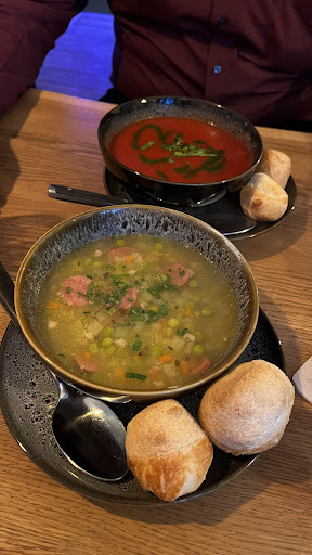 War eine einzige Katastrophe. Die erste Bedienung war nett und freundlich und brachte uns die Karten so das wir dann auch recht zĂŒgig die GetrĂ€nke bestellen konnten. Diese kamen dann auch in einem angemessenem Zeitrahmen. Dann kam der Break, Bedienung wechselte und man merkte schon gleich an den etwas entglittenen GesichtszĂŒgen das Sie nicht den besten Tag hatte. Nachdem wir dann unsere Essensbestellung abgegeben hatten kam die harsche Ansage das es ein wenig lĂ€nger dauern könnte. Erstaunlich da es eigentlich nicht sehr voll war. Bei der Essensbestellung wollte ich meinen Beilagensalat gerne mit Essig und Ăl haben. Das wĂ€re nicht möglich, sie hĂ€tten nur eine Beerenvinegrette. Erstaunlich das in der KĂŒche kein Essig und Ăl vorhanden sei. Zwischenzeitlich die zweite GetrĂ€nkebestellung aufgegeben, was soll man auch machen wenn man 1 3/4 Stunde auf das Essen wartet. Leider kamen die bestellten Weizen (mit und ohne Alkohol) beide in GlĂ€sern mit alkoholfreiem Emblem einer bekannten Biermarke aus der Nachbarschaft. Hier lag dann eine Verwechslung vor, so daĂ ich zuerst das alkoholisierte Bier vor mir hatte. Auf Nachfrage wurde dann noch einmal gewechselt und ich hatte dann das alkolfreie Bier. Das wĂ€re ein sehr teures Taxi geworden, 30km Heimweg, 50km zur Arbeit und dann noch einmal 70km um meinen PKW wieder abzuholen. Wie schon geschrieben kam dann 1 3/4 Stunde nach der Bestellung das Essen. Am Essen war nichts auszusetzen, es schmeckte sehr gut. Aber bei einer Beilage erwarte ich das sie ihrem Namen SĂ€ttigungsbeilage dann auch Ehre macht und ich mit denn dazu gelegten Pommes nicht mit sehr viel MĂŒhe eine digitale zweistellige Zahl (88) erstellen kann. Ja ich weiĂ mit Essen spielt man nicht, aber hier war der spielerische Rahmen sehr ĂŒberschaubar aufgrund der sparsamen Beilage. Ich bin mir durchaus bewusst das wir in der Gastro schwere Zeiten hatten und haben, erst Corona, dann der Ukrainekrieg, die Inflation, Personalprobleme usw., aber bei den Preisen kann man schon etwas mehr Performance erwarten. Ich weiĂ aus Erfahrung das es hier auch schon einmal besser ging. Wie gesagt um 18 Uhr gekommen, 20:30 das Essen bekommen. FĂŒr BerufstĂ€tige Personen mit einem am nĂ€chsten Tag um 3:30 beginnenden Arbeitstag ist da dann wohl die Alternative entweder die Bestellung schon gegen 16 Uhr telefonisch aufzugeben oder gleich zu den Essensdiscountern zu gehen. Vermutlich werde ich es noch einmal probieren, unter der Voraussetzung das ich am nĂ€chsten...