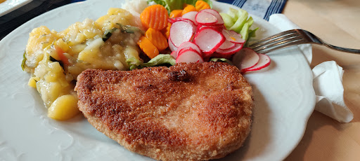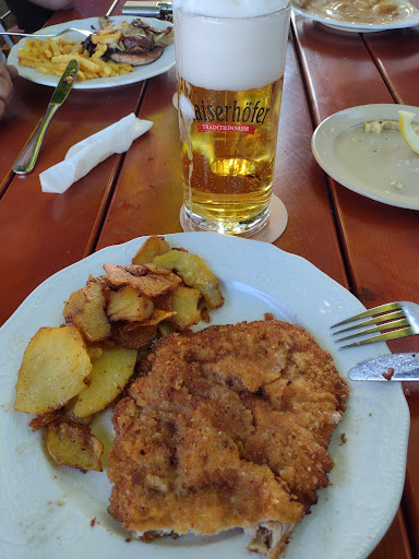 Read moreAls wir ankamen, war der Eingang zur Straße verschlossen und wir sind durch den Eingang im Hof in das Lokal gelangt. Dies hätte vermutlich ein Zeichen sein sollen. Ehrlich gesagt, ist es mir ein Rätsel wie die ganzen guten Rezensionen zustande kommen. Weder sind die Portionen besonders groß, noch das Personal freundlich. Ich habe mich selten weniger willkommen gefühlt. Die Schnitzel waren viel zu dick, die Panade ebenfalls, zudem schwammen sie in Fett. Die Rahmsauce war aus einem Pulver angerührt und ausgeflockt oder geleeartig eingedickt. Der kleine Salatteller war gut, die Pommes, Bratkartoffeln mit Leberkäse und Spiegelei ebenfalls. Dafür gibt es die zwei Punkte. Ansonsten kann ich das Lokal leider gar...