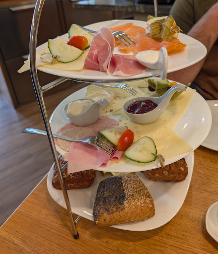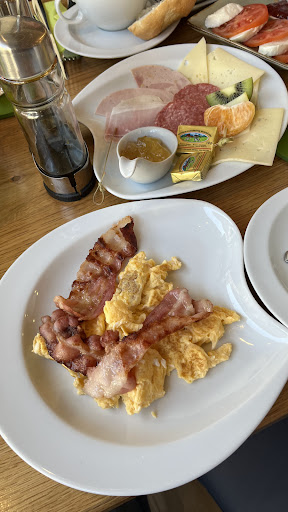 Der Kaffee/Milchkaffee war ungenießbar. Ich habe selten so eine dünne Brühe bekommen. Zudem habe ich schmutziges Geschirr bekommen (Frühstücksteller war nicht sauber, am Orangensaftglas klebte noch ein Stückchen Eierschale ...) Die Salamischeiben waren scheinbar schon älter und man konnte sehen, dass sie aus einer Verpackung (vom Discounter?) stammten. Dafür war der Preis aber gesalzen. Zu teuer für halbierte Käse- und Wurstscheiben ....