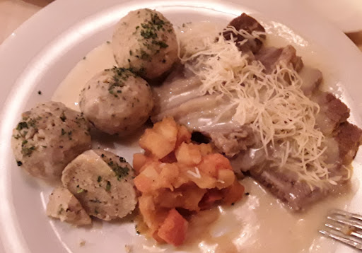 Das Essen - wir wollten Freunden Kronachs beste Adresse zeigen - war insgesamt leider enttäuschend. Nachdem 1 Person glutenhaltige Speisen nicht verträgt, bot uns der Koch an, die Krensauce glutenfrei zuzubereiten. Das fanden wir toll! Leider fanden wir auf dem Teller dann neben den Kartoffelklößen noch 2 Semmelklösse vor.😨😨😨 Diese waren recht matschert, keinerlei Lockerheit bzw. Struktur erkennbar.