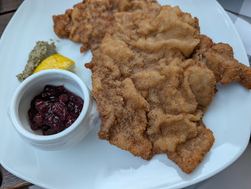 Das Essen war ebenfalls enttäuschend: Es wurde kalt serviert und war geschmacklich absolut mangelhaft. Das Kalbsschnitzel bestand fast nur aus Panade – vom Fleisch war kaum etwas zu sehen. Die Ente war roh und geschmacklos. Insgesamt fehlte es den Speisen an Qualität und Liebe zum Detail.