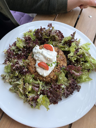 Nach geringer Wartezeit wurden die Essen dann serviert das Essen meiner Frau war anders als beschrieben ein normaler und kein Gemischter Salat in der Mitte des Tellers befand sich ein komisch Aussehender Brei, siehe Bilder. Geschmacklich war das Essen: „Ok“, so meine Frau. Von Menge und Geschmack subjektiv für uns das Geld nicht wert.