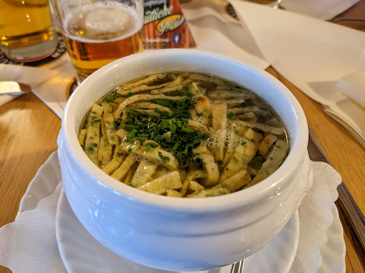 Short: Very good Bavarian/Austrian food Long: Went there for dinner, staff was very, very friendly and helpful, food was delicious. Expect rather "traditional" Bavarian or Austrian food in a traditionally decorated atmosphere (see photos close by). Easy to reach, parking lot just up front (free for 4 hours), clean facilities and a nice dog (well trained, won't disturb you if you are afraid of dogs) Only (!) downside - just cash or "German" cards. Bit of a bummer in an otherwise perfect experience, but also easy to figure out: you either pay with PayPal or walk to the ATM at the main Street (450 meters)