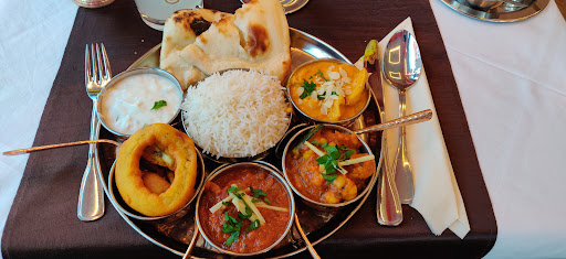 Durch die Kombination von unterschiedlichen „Grundzutaten“ z. B. Ente, Huhn, Lamm, Fisch usw. mit verschiedenen Zubereitungsarten gibt es auf der Karte eine Vielzahl von Gerichten. Obwohl sich die Gerichte teilweise optisch stark ähneln, z. B. Ente „Vindaloo“ und Ente „Karahi“ schmecken sie – Gott sei Dank - deutlich unterschiedlich. Auch als „scharf“ gekennzeichnet Gerichte sind gut essbar. Die Größe der Portionen ist absolut ausreichend, v. a. wenn das Nan-Brot die Beilage ist. Aber auch beim Reis sind ggf. Nachbestellungen problemlos und schnell möglich. Großes Angebot auch für Vegetarier. Am Abend gibt es einen Gruß aus der Küche, der anscheinend immer gleich ist. Das Personal ist freundlich und zuvorkommend. Die Tische sind ohne Tischdecke, worunter sowohl Gemütlichkeit als auch die Akustik leiden. Aber evtl. ist dies auch coronabedingt.