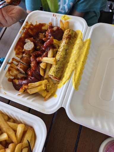 Die Currywurst war nicht schön gebraten, eher wurde hier die brühwurst nur kurz erwärmt. Der Geschmack somit nicht so toll. Die Pommes haben geschwommen in der Saucen und waren eigentlich alle matschig. Die Currywurst mit der Currysauce war Geschmacklich auch eher daneben da sollte man lieber nur den Klassiker rein packen. Die Wurst ist von der Größe so wie eine halbe normale Wurst. Davon dann 2 Stück mit einer handvoll Pommes für ca 12 Euro..... Wahnsinn.