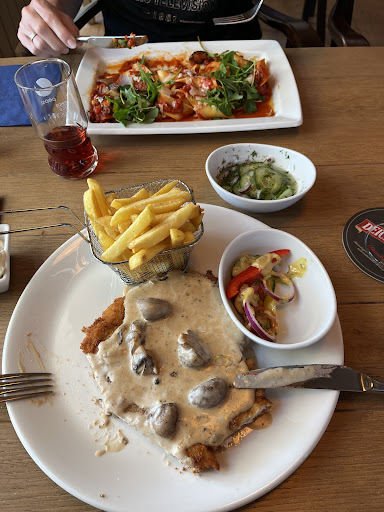 Die Portion zu klein und Geschmacklich eher Campingküche von nebenan. Beim Schnitzel gab es 2 kleine Schnitzel auf dem Teller mit einer Hand voll Kartoffelsalat den eigentlichen keiner mochte.