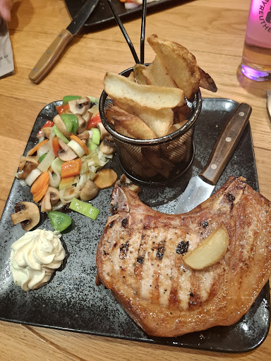 Read moreDas Essen und die Drinks waren wirklich super. Vorallem das Lachssteak ist nur zu empfehlen. Leider ließ die Bedienung/der Service zu wünschen übrig. Bis zum Zeitpunkt unserer Bestellung war alles super, und die Bedienung sehr aufmerksam und freundlich. Nachdem wir unser Essen bekamen fühlten wir uns allerdings etwas links liegen gelassen. Die anderen Tische im Restaurant, auch unser direkter Nachbartisch, wurden mehrmals gefragt ob alles in Ordnung sei. Wir wurden während wir aßen, bis zu dem Zeitpunkt an dem wir das Restaurant verließen kein einziges Mal gefragt ob das Essen schmeckt, wir weitere Wünsche hätten etc.. Weiterhin wurden Handzeichen unsererseits entweder ignoriert oder unglücklicherweise dauerhaft übersehen. Gepaart mit der Tatsache, dass wir keine Servietten an unserem Tisch hatten, führte dazu, dass wir eigens mitgebrachte Taschentücher im Restaurant als Serviette zwecksentfremden mussten. In die Lage weitere Getränke oder Nachtisch zu bestellen kamen wir dadurch auch nicht. Zum Bezahlen mussten wir dann direkt an die Theke gehen, da auch hier unsere Handzeichen weiterhin ignoriert/übersehen wurden. Schade, ansonsten wären das Essen und die Drinks locker 5-Sterne...