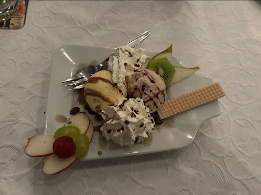 Read moreDer Ausblick auf der Terrasse ist super, innen ist es zwar alt aber meiner Meinung nach sehr traditionell und auch passend. Zum Essen, da haben wir entweder einen schlechten Tag erwischt oder da hat sich der "Schlendrian" eingeschlichen. Der Vorspeisensalat war total überzuckert. Der war so süß, dass ich vermute, das der Köchin die Dose ausgerutscht ist. Müsste man beim Abschmecken aber spätestens auffallen. Zum Hauptgang gab es einmal Tafelspitz und einmal gefüllte Hähnchenbrust. Die Soße zum Tafelspitz war geschmacklich nicht cremig genug, da fehlte einfach der runde Geschmack (Sahne). Fleisch war OK und sehr dünn geschnitten. Die Hähnchenbrust war super allerdings die Kartoffeln sehr Geschmacklos. Klingt wie Jammern auf hohen Niveau, ist es aber nicht. Das Essen sah klasse aus, war aber geschmacklich nicht gut abgeschmeckt. Vielleicht kocht da auch noch die Oma, keine Ahnung. Der Service war leider auch nicht auf zack. Essen serviert und das wars. Ich brauchte Salz und Pfeffer aber es kam Niemand und fragte ob alles passt. Ich hatte auch keine Lust extra nochmal von der Terrasse runter zum Tresen zu latschen. Erst als wir fertig waren kam die Dame vom Service wieder um die Teller abzuräumen. Alles in allem nichts was mich dazu bewegen würde noch einmal dorthin zu gehen. Schade eigentlich. Vielleicht war das aber der Grund, warum wir nur dort ganz kurzfristig einen Tisch...