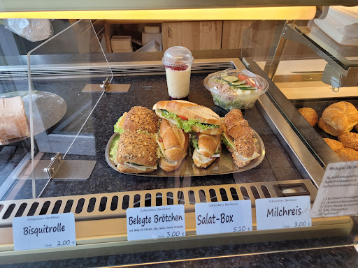 Eine super nette Verkäuferin und g´schmackige Backwaren und Kaffee, der noch echt gebrüht wird und nicht aus der Thermoskanne kommt. Das Ambiente ist sehr schlicht, was an sich nicht schlecht ist. Aber das laute Geräusch der Lüftung an der Eingangstür ist schon ziemlich nervig. Das Desinfektionsmittel stinkt nach Essig. Hier sollte man eventuell mal überprüfen ob das noch gut ist. Mit viel Wohlwollen die...