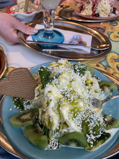 Read moreMein Urteil bezieht sich außschließlich auf das Frühstücksbuffet, zur Pizza und dem Eis kann ich nichts sagen. Das Café ist sehr groß, das Buffet fürs Frühstück ist sehr klein und im Hauptbereich direkt vor der Theke aufgebaut. Wir saßen mit einer größeren Gruppe leider „draußen“ im Überdachten geschlossen Äußeren Teil also schon etwas weiter vom direkten Buffet, theoretisch auch nicht schlimm. Leider aber ebend doch , da dass Buffet nicht ausreichend nach gelegt wird. Ca 9:45 Uhr keine Körner Brötchen da und auch das Rührei war zu wenig und wurde nicht nach gefüllt, genauso wie gekochte Eier nicht. Tomate Mozzarella leer, Käse nur eine Sorte dafür zwar Brie in verschiedenen Sorten aber nicht gut. Besteck am Buffet zum Mitnehmen war nicht da. Erst nach Öfteren nachfragen gabs Körner Brötchen aufgebacken, keine Gute Qualität. Rührei schlecht gewürzt und es gab kein Salz/ Pfeffer zum selber nach würzen. Die Teller waren alle mit Macken versehen, könnte auch mal getauscht werden. Der Service kam nur auf Nachfrage an den Tisch ob noch Getränke gewünscht werden, sowas sollte ein Café sehen. Was leider erlaubt zu sein schien ist, das Rauchen in diesen Inneren Außenbereich, was aber komplett geschlossen ist. Finde ich in der heutigen Zeit aber als unangebracht. Rauchen gehört nach...