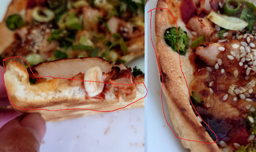 I was disappointed and regret with my last order. I ordered a lot of time in Dominos, previously almost all time the pizza was good, but last time it was absolutely bad - the dough was absolutely dry and VERY hard (see on the photo). The Pizza looks like expired 1 week earlier, noе salty and almost COLD (like from supermarket and from Microvaweoven). It said that they don't have the product control and I received normal pizzas before accidentally. I think it's better to order father in the restaurant for the same price, i scare to...