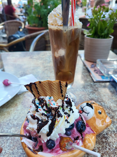 This place feels like it’s still in business simply because there’s lack of competition. Not sure if the staff are racist, but our white sister-in-law was offered a free taste of ice cream and when I, a brown person asked, I was told no. Still, the rest of us all bought some ice cream and wanted to sit outside at the tables (there were so many empty, and it’s a quiet Monday with little crowds) but one of the staff told us we couldn't because we spent less than €90 and it’s German law? So idk if any of that is true or he just didn't want hijabis / brown people sitting outside his store and “soiling” its image.