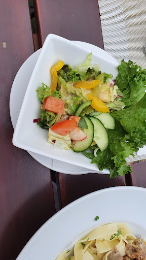 Read moreGeht gar nicht! Besser woanders hingehen. Lage ist natürlich toll, aber wir haben 40 Minuten auf das Essen gewartet (auch die Kinder) und davor wurden wir nichtmal vorgewarnt. Und ehrlich, Milchreis, strammen Max, Kinderschnitzel...wie lange kann das bitte dauern? Selbst bei vollem Lokal? Man könnte ja, gerade wenn Kinder dabei sind, sagen, dass es heute länger dauert usw. Auf Nachfrage nach 30 Minuten war die Antwort eher schroff. Von der Bedienung aus kein Wort. Und dann kam das Essen....uns hat es nicht geschmeckt. Hätte es geschmeckt wären wir evtl versöhnt gewesen.. aber nee. Langsame Küche, rauhe Bedienung, schmeckt nicht besonders und dafür relativ teuer. Der Knaller war noch, dass wir bei einem Gericht nachfragten, ob das Würstel seien....gekommen sind zwei dicke Blutwürste. Hätte man, bei offenkundig Fremden, ja auf die Nachfrage mal erwähnen können. Also zu allem dazu noch nicht mal...