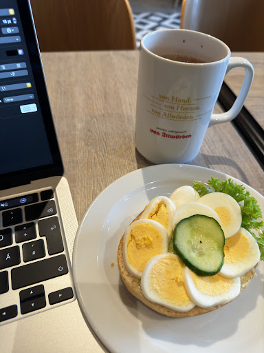 Read moreIch habe mit meiner Freundin dort gestoppt. Wir beide wollten einen macciato und sie ein Ochsenauge und ich ein st. Himbeerkuchen. Die junge Verkäuferin gab uns 1 keks zum Kaffee. Ich sagte, wir sind aber zu zweit. Daraufhin antwortete sie, gibt nur 1 pro 7 Euro. Ok... dann fragte ich sie, welche Teesorten im Tee Adventskalender sein. Sie sagte das wüsste sie nicht, könnten aber die hier zu verkaufenden Sorten sein. Dann fiel meiner Freundin auf, dass sie nicht das Ochsenauge mit aufgenommen hat bei ihrer Bestellung. Sehr arrogant and überfordert in allem sagte sie, ohhh. Der Himbeerkuchen war nicht frisch. Als meine Freundin das Tablet in den dafür vorgesehenen Wagen stellte, fiel das Tablet durch. Der junge Mann sagte zu uns, dass Tablet sei zu klein für diesen Wagen. Wie bitte was??? Da waren wir 1x und nie wieder... Schlechter Service. Die Kräftige Verkäuferin rutschte zudem ihren Schlüpfen vor der Kundschaft zurecht oder kratzte sich ihr Hinterteil. Sowas von Ekelhaft,...