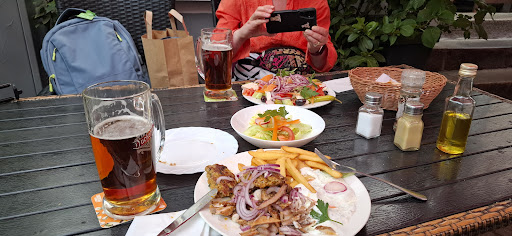 Ich war am 9. August mit einer Freundin gegen 14 Uhr dort essen. Wir haben uns ganz klassisch für Gyros mit Käse überbacken (14,90€) und Gyros mit Käse überbacken und Metaxasauce (16,50€) entschieden. Leider konnten wir geschmacklich keinen Unterschied feststellen. Warum hat mein Essen 1,60€ mehr gekostet? Wir konnten es nicht nachvollziehen. Nichts desto trotz, geschmeckt hat es uns beiden und auch der Salat als Vorspeise, der mit dabei ist, war frisch und lecker. Die Pommes, die zur Portion gehörten waren ebenfalls sehr gut (große dicke Pommes; die Alternative wäre Reis gewesen). Insgesamt für den Preis eine ordentliche Portition, die wir beide gerade so geschafft haben. Einen Ouzo gab es zwar nicht, aber den hätte ich bei den Temperaturen tagsüber auch eher abgelehnt.