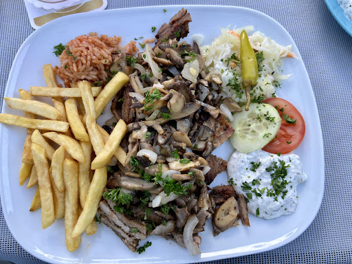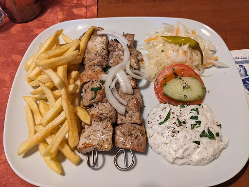 Meine Wahl fällt somit auf Souflaki zu 16,50 € und ein kleines alkoholfreies Bier zu 3,80 €. Beides wird nach angemessener Wartezeit serviert. Die Pommes sind knusprig, das Schweinefleisch ist saftig und zart, sehr appetitlich gewürzt. Alles in allem sind wir sehr zufrieden. Lobend erwähnen möchte ich noch den milden, sehr schmackhaften Ouzo, den es auf Kosten des Hauses nach...