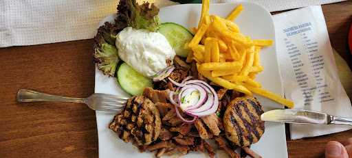 Read moreUnsere Tochter kommt öfters hierher und ist begeistert. Nun wollten auch wir es einmal ausprobieren. Wir gehen sehr gerne Griechisch essen. Wir sind mit 4 Erwachsenen, 1 Kind und 1Hundewelpe angekommen. Wir wurden sehr freundlich empfangen und zu unserem Tisch begleitet. Schnell wurde die Bestellung aufgenommen und wir haben unsere Getränke bekommen. Wir haben alle Büffet bestellt. Das Essen hat uns sehr gut geschmeckt. Die Temperatur des Essens war so , dass man gleich beginnen konnte. Nicht kalt , nicht heiß. Die Auswahl war nicht groß, jedoch für jeden was dabei. Das Preis Leistungsniveau ist völlig gerechtfertigt. Die Toilette war ordentlich und sauber. Mit der Zeit war das Restaurant sehr gut besucht. Das bekamen wir dann auch zu spüren. Wir wollten eine neue Bestellung aufgeben und müssten dann nach einer Weile nach vorne, damit jemand zu uns an den Tisch kommt. Das Personal konnte gerade mal die Erstgetränke und a la carte an den Tisch bringen. Jedoch blieb der Service, um weitere Getränke auf der Strecke. Mehr Personal wäre in diesem Fall klüger. Als wir bezahlen wollten, hatte ich mich entschieden meine Familie einzuladen. Ich wollte mit Karte bezahlen. Das funktionierte leider nicht. Das Gerät zeigte einen Fehlercode an und einen englische Information. Da ich mich damit auskenne und auch Englisch spreche , möchte ich anmerken, das es ein internes Defizit ist. Mir war die Situation unangenehm, da ich mir nun Geld leihen musste. Meine Tochter geht sehr oft dorthin und bestätigte mir , dass dies ein Dauerproblem ist. Was mich jedoch noch mehr ärgerte war , als wir bezahlt haben. Wir haben bezahlt , als ein Kellner vorbei kam, da wir nicht wussten wann wieder einer Zeit hat. Somit hatte mein Mann sein Getränk noch nicht ausgetrunken. Der Kellner kam und meinte wir haben bezahlt und müssten den Tisch jetzt frei machen, da neue Gäste schon warten. Wir haben dann alle meinem Mann beim austrinken geholfen. Somit mein Fazit: Ich würde meiner Tochter zuliebe nochmal dorthin gehen, mir jedoch genug Bargeld einstecken und erst bezahlen, wenn die Getränke leer sind. Der Abend war sehr schön, jedoch einen schalen...