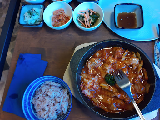 Read moreNot very spicy (as in hot), but spiced to the right amount and very tasty food! Had dumplings for starters, which were crispy and delicious. Their main dish comes with a soup and 3 sides, again, very flavourful. I recommend this restaurant. Also try their cocktail made with Korean alcohol! The servers were happy to speak in English with me and in German with my friend so we both were happy :) The lighting and ambience must be good too, because my mother loved the picture my friend took of me here. But I was too involved in the food to notice the...