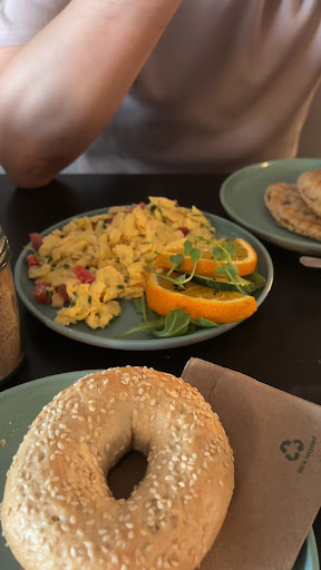 The scrambled eggs and bagel were great! Simple, home-made and tasty. The Panini with smoked salmon was a unique flavour. It had sour notes from the pickled jam, smokey flavour and umami notes from the salmon. It was surprising to taste at first but once you get used to it, its...