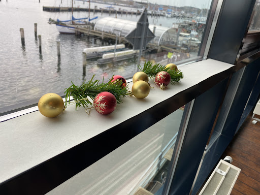 So war es dann...wir konnten uns dahin setzen...ziemlich weit durch am Fenster rechts...mit Blick auf die Trave...