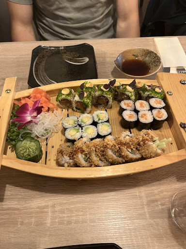 Read moreWaren leider seeeehr enttäuscht. Das Restaurant hat so gute Bewertungen, dass wir uns auf gutes Essen eingestellt haben. Zuerst zu den Getränken: das Bier, welches mein Partner hatte, schmeckte abgestanden. Mein spritziger Drink war leider auch nicht so mein Geschmack. Jetzt zum Essen: wir hatten nicht so großen Hunger, hatten also jeder nur zwei Sushirollen bestellt. Die Makis waren okay, aber wir fanden, dass (vermutlich) der Reis etwas versalzen war. Dann hatte ich eine vegetarische Crispy Rolle mit Tofu, laut Speisekarte 8 Stück. Auf meinem Teller hatte ich dann 6 Stück zu liegen. Natürlich für den gleichen Preis. Naja, ich hatte dann nachgefragt und die Erklärung war, dass die Stücke halt einfach ein bisschen dicker geschnitten worden sind. Wie man aber auf dem Bild (unten im Bild) sehen kann, waren die Stücke auch so schon sehr dünn. Für mich einfach nur Abzocke. Um auf den Punkt zu kommen: für das Geld, und es ist definitiv ein teueres Sushi-Restaurant, habe ich vieeeeel mehr von Allem erwartet. Würde das nächste Mal dann eher zu einem anderes Sushi...