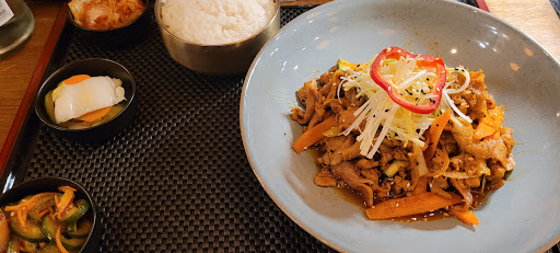 Read moreWir waren etwas irritiert, als der Kellner uns direkt rausgebeten hat. Es stellte sich heraus, dass der Lebensmittelladen nebenan in einen zweiten Gästebereich umfunktioniert wurde. Grundsätzlich ok. Das Problem an dem Raum ist, dass die Kellner selten dort waren, die Tür ständig offen war der kleine Raum dazu auch noch schlecht beheizt ist. Die Toilette lies sich nicht abschließen (!). Das Preissystem ist nicht ganz deutlich. Erst auf Nachfrage erklärte man, dass die Gemüsebeilage (und nicht fer Reis) extra kosten, was mehr als ungewöhnlich für koreanische Restaurants ist.