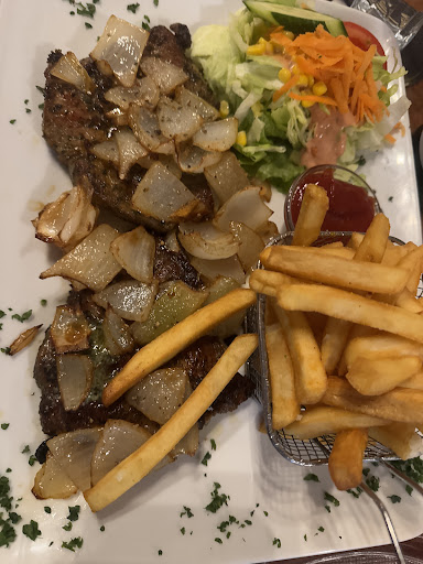 Der Service war miserabel, besonders beim Bezahlen. Aber das Schlimmste war das Essen: Das Steak war innen blutig und roh, und anstatt frischem Knoblauch auf der Pizza bekamen wir einfach Knoblauchbrot. Absolut enttäuschend!