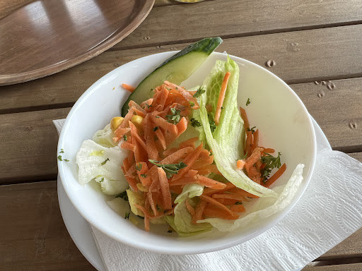 Read moreWar leider sehr enttäuscht und hätte vorher lieber die Rezessionen lesen sollen. Ich hatte nichts aufregendes bestellt, nur ein ganz normales Schnitzel mit Pommes. Das Schnitzel könnte wie schon erwähnt tatsächlich TK-Ware sein und die Pommes dazu waren auch sehr übersichtlich. In der Karte stand dann noch was von Salat und Ketchup. Es war schon sehr ungewöhnlich, dass Ketchup mit auf der Karte stand und bei dem erwähnten Salat war ich sprachlos. Es lag ein rundgewölbtes Stück Eisbergsalat mit einer halben Orangenscheibe sowie ein paar Karottenraspeln die ich hätte abzählen können, wenn ich es gewollt hätte auf dem Teller. Im Nachhinein ärgere ich mich kein Bild gemacht zu haben. Es ist eine Frechheit überhaupt den Salat mit zu erwähnen. Das war eine Deko, die nicht besonders gut war, Soetwas wird nicht in einer Karte erwähnt und für dieses Essen habe ich 15€ gezahlt! In jeder Imbissbude hätte ich besser und günstiger gegessen. Ebenfalls war das Personal nicht sehr freundlich. Kein Lächeln, nicht aufmerksam. Es wurde zwischendurch nicht gefragt, ob alles in Ordnung ist. Es wurde nicht gefragt, ob wir noch etwas möchten und das Personal hätte Zeit gehabt. Als wir fertig waren ist der Kellner mehrmals mit leeren Händen an uns vorbei gelaufen ohne die Teller abzuräumen, stattdessen stand er gelangweilt herum und hat telefoniert. Ich habe selber eine gastronomische Ausbildung, kenne daher beide Seiten und kann auch über vieles hinwegsehen. Es war das erste Mal in meinem Leben, dass ich kein Trinkgeld gegeben habe und im Nachhinein zu recht. Sowohl mein Mann als auch ich hatten danach...