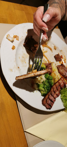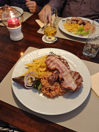 Wir waren mit Freunden das erste Mal dort essen. Die Reservierung am Telefon war schon nicht sehr freundlich. Wir hatten dann einen Tisch für Samstag 17:30 Uhr reserviert. Das Restaurant war sehr gut besucht diesen Tag. Wir mussten schon 5 Minuten mitten im Restaurant warten, bis zum zum Tisch begleitet wurden. No-Go Am Tisch angekommen mussten wir fast eine halbe Stunde warten, bis dann unsere Bestellung aufgenommen wurde. Wir waren schon kurz davor aufzustehen und zu gehen. Sowas geht gar nicht. Samstags kann man so ein Restaurant halt nicht mit 3 Personen bedienen!!! Der Salat war sehr traurig angerichtet. Keine Tomate, keine Gurke..einfach nur Eisbergsalat, Krautsalat, ein paar Bohnen und etwas geriebene Möhre. Das Hauptgericht jedoch war einfach nur Klasse. Ich hatte den Grillteller und dieser hat meine Erwartung übertroffen. Hierfür 5 von 5 Sterne. Super Fleisch Qualität, alles ganz super zubereitet und ausreichend. Bei meiner Frau gab es jedoch die Nummer 19 statt der Nummer 18. Hier gab es nicht einmal eine Entschuldigung vom Service. Wir wollten aber auch nicht nochmal 15 Minuten auf ein neues Gericht warten. Wäre der Service nicht so schlecht, dann könnte es eines meiner Lieblings Restaurant in...