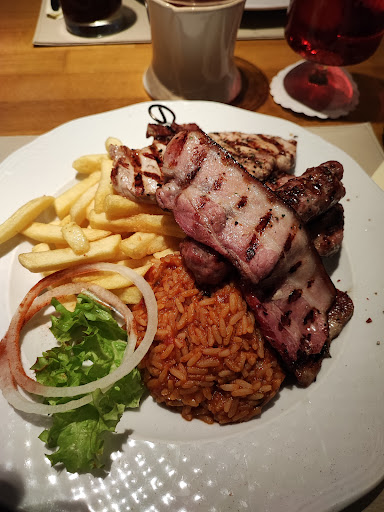 Read moreVielleicht hatten wir am Freitag nur Pech: Wie immer war es nahezu ausgebucht, aber wir hatten reserviert. Die Gerichte waren ziemlich lieblos angerichtet und alle am Tisch bemängelten, dass man durch das Fleisch auf den Spießen fast durchsehen kann. Das war letztes Jahr noch deutlich besser. Und so dünne Scheiben sind dann auch schnell furztrocken. So auch hier. Das gefüllte Hacksteak war jedoch in jeder Hinsicht lecker. Zu sechst bekamen wir nur eine der kleinen, obligatorische Schalen mit Salsa und gewürzten Zwiebeln auf den Tisch. Das war ein bisschen sehr knapp und die grüne Salsa mit Knobi gibt's wohl auch nicht mehr.