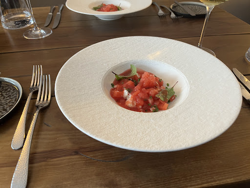 Das „Überraschungsmenü“ war vor allem eines: überraschend mittelmäßig. Die Vorspeise, ein Carpaccio, war tatsächlich noch respektabel – mit einer schmackhaften Sauce, zu der aber ein Löffel, oder besser noch Brot fehlten. Unsere Bitte um „etwas Brot“ wurde mit einem „Brot gibt's nicht dazu. Sie können noch einen Brotnachschlag bestellen. Ich buche den für Sie.“ kühl abgebügelt.