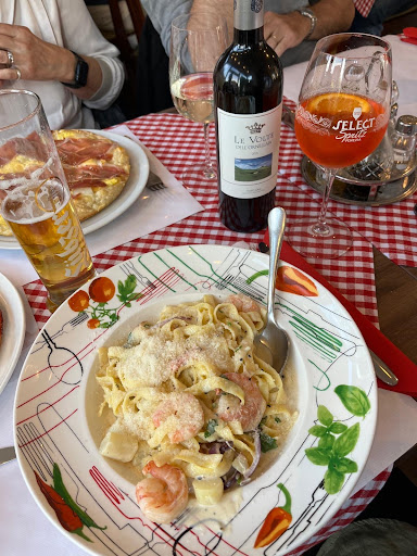 Read moreWird der Pizzaboden selbst hergestellt? Wir hatten 3 Pizzen, alle sahen gleich kreisrund aus und hatten auch exakt den gleichen Durchmesser. Macht mich skeptisch! Finde ich schade bei einem Italienischem Restaurant mit italienischem Inhaber. Die Pizzen waren gut belegt und haben geschmeckt, die beiden Nudelgerichte waren von der Menge ausreichend und auch lecker! Zum Ambiente: Naja, die Bestuhlung stand schon in der Dieselstr., sieht dementsprechend aus. Und auch die Enge ist geblieben! Von der Tischkante bis zur Stuhllehne hat jeder Gast nur 40cm Platz. Das muss man mögen, dass man eigentlich mit seiner Armlänge auch beim Tischnachbarn sich bedienen könnte. Auch die Pizzateller haben ihre besten Zeiten hinter sich, alle 3 Pizzateller waren am Rand abgeplatzt. Manche weniger, manche mehr (bis zu 6 Stellen) Und dann gibt es da noch ein Wandregal in dem alles reingestellt wird, was man gerade nicht braucht und es dadurch total chaotisch aussieht. Macht da nen Vorhang. Service: Ich denke man muss Glück haben wen man hier erwischt! Wir hatten kein Glück an diesem Abend! Die Bedienung war schon genervt das wir nach 5 Minuten noch nicht wussten was wir alle essen wollten und wir nur erstmal Getränke bestellt haben. Bei der Essensausgabe gab es kein Guten Appetit, die Teller wurden hingestellt und weg. Auch kein Zwischendurch mal Schmeckt es, nix. Auch unsere leeren Gläser wurden missachtet. Wird wohl wieder 4 Jahre dauern bis wir...