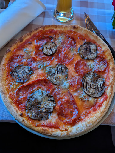 Read moreWir waren heute das erste Mal hier (und nicht das letzte Mal!). Das Ambiente ist auf den ersten Blick sehr schlicht gehalten. Auf den zweiten Blick ist es mit viel Liebe eingerichtet. Man wird vom Personal sehr freundlich begrüsst. Unter den weissen perfekt gebügelten Tischdecken befinden sich verschnörkelte Tischbeine. Der Tisch ist liebevoll gedeckt, die schneeweissen Stoff(!)servietten stehen fast als Kerze auf den Desserttellern. Es wird leckeres frisch gebackenes Brot gereicht, und als Dipp träufelt man Olivenöl direkt am Tisch auf den Teller. Als Vorspeise hatte ich frischgekochte Minestrone, bei der der Käse bei Geschmack direkt frisch am Tisch auf die Minestrone gerieben wird. Die Salatsauce zum Hauptgericht war perfekt abgeschmeckt. Der Essig war gut rauszuschmecken, trotzdem nicht zu essiglastig. Das Saltimbocca a la Romana war zwar sehr übersichtlich, aber ausreichend. Als Gemüsebeilage war Mangold, Spitzkohl, Möhrchen und Rumanesco zu finden. Dazu wurden Rosmarinkartoffeln serviert. Alles sehr schmackhaft. Den Wein kann man erstmal probieren, bevor man sich am Platz ein volles Glas einschenken lässt. Das Personal ist sehr freundlich und aufmerksam. Man kann merken, dass hier der Beruf gelebt wird! Hier ist der Kunde noch König! Der Pizzateig ist ebenso frisch gebacken und sehr schmackhaft. Hier kommen überhaupt nur frische Zutaten zum Einsatz. Das Preis-/Leistungsverhältnis stimmt. Die Rechnung wird in einer kleinen Schatulle/Schatzkiste gebracht. Die Garderobe findet in einem grösseren Bauernschrank Platz. Wir haben uns hier 2 1/2 Stunden aufgehalten, weil wir es hier sehr gemütlich fanden! Wir kommen...