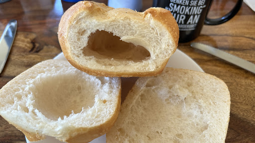 Die dümmsten Bauern haben die dicksten Kartoffeln... Wer diesen Spruch kreiert hat, war noch nicht bei Kayser... Exorbitant große Brötchen (vor wenigen Wochen gar nahezu rechteckig), doch innen leider nur ein riesiger Hohlraum, quasi eine Luftnummer. Das muss man mögen, das Loch kann man ja z.B. direkt mit 500g Mett füllen :-). Doch auch das andere Extrem habe ich hier schon erlebt, kleine, gar winzig-mickrige Brötchen. Braucht die Verkäuferin sonst zwei Tüten zum Verpacken, passen die Brötchen dann in eine Tüte (wobei ich glaube, dass die verwendete Teigmenge ebenso wie der Preis stets konstant ist). Nun ja, es ist halt der nächste Bäcker und deshalb komme ich immer wieder. Apropos Verkäuferin, hier in dieser Filiale gibt es sehr freundliche, aber auch hin und wieder sehr unfreundliche und wenige ungepflegt erscheinende Mitarbeiter. Die Sauberkeit in der Filiale könnte auch besser sein, schauen Sie mal auf das obere Ende der Trennwand über dem Brotregal... Auch habe ich hier in Rezensionen gelesen, es gäbe ein reichhaltiges Angebot... Der Kunde war offensichtlich noch nicht bei dem Mitbewerber auf der Bräuckenstraße.. Doch noch ärgerlicher ist es, wenn Sie zu normalen Versorgungszeiten (Samstag 09:30Uhr) zu dieser Filiale fahren, und Brot und Brötchen ausverkauft sind. Auch das kommt hier leider immer wieder mal vor. Und noch ein abschließender Kommentar zur Kayser Zentrale: Auch wenn Sie sich die Mühe machen und der Zentrale eine Mail mit Hinweis auf Missstände senden, erwarten Sie nicht, dass man sich herablässt, Ihnen auch nur ein Wort als Antwort zukommen zulassen. Guter Kundenservice und Wertschätzung der Kunden sieht sicher anders aus! Alles in Allem leider...
